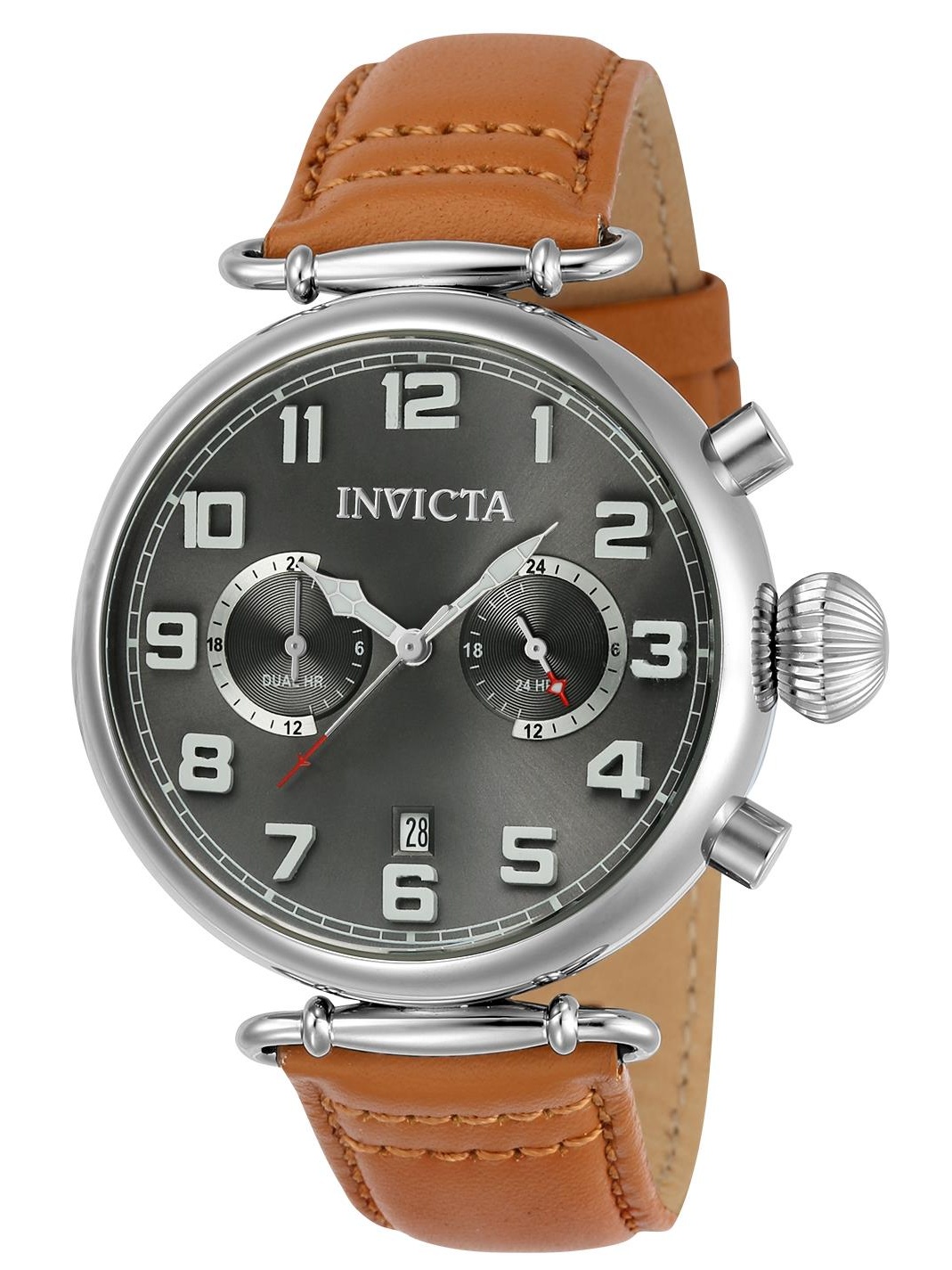 Invicta Men S Aviator 46mm Tan Leather Band Steel Case Flame Fusion Crystal Quartz Grey Dial Watch 22980 Walmart Com